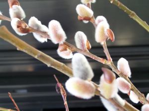 DECIDUOUS SHRUBSSalix x 'Winter Glory' – This is one of the most beautiful willows in cultivation. According to Michael Dodge, the guru of willows, "This beautiful and vigorous male hybrid was found in the wild in Japan and is a cross between two native species S. gracilistyla and S. caprea, which they call S. bakko! (There is reference to S. x leucopithecia as a cross between these species--horrible name for such a beautiful plant!)." Eek! Leucopithecia sounds like a disease. Anywho... It has huge silvery gray catkins that emerge from attractive glossy red bud sheaths against olive to olive brown wood. They begin to emerge in USDA zone 5b as early as late January, lasting for nearly 2 months. In some winters some sheaths will begin to crack and expose catkins at the New Year. The catkin size is the reason for another common name, Giant Pussy Willow; on maturing specimens in excellent conditions the catkins can be quite large. A quick growing shrub, this will make a fascinating screen or specimen with a long season of interest when little else has even begun to stir from the long winter nap! Established pot grown shrub from cutting.