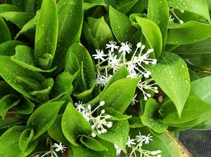 SHADE PERENNIALSSpeirantha convallarioides (ex: Jonathan Lehrer) – Smooth leathery and virtually evergreen leaves loosely resemble Lily-of-the-Valley which is from where its species name, convallarioides, comes. (Convallaria is the genus name for Lily-of-the-Valley.) The common name for Speirantha convallarioides is False Lily-of-the-Valley. Are you confused yet? In May up north rounded open globes composed of white starry flowers light up in the shade that this Chinese woodlander prefers. Plant False Lily-of-the-Valley in soil fertile soil where it will slowly spread into an impressive ground cover. Spring planting is advised in the northern end of its range. Pot grown from rhizome divisions.