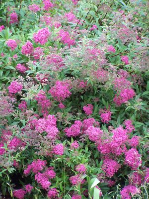 DECIDUOUS SHRUBSSpiraea x bumalda ‘Neon Flash’ – The dark green foliage is flushed with some bronze-maroon upon emerging. Corymbs of deep yet bright pink flowers, very showy, appear for a long season and great numbers in summer. Some recurrent flowering usually occurs. In autumn the foliage becomes infused with red and burgundy tones and is handsome set with any shrub with brighter autumn tones. Winter wood is sienna brown while the browned corymbs remain on the shrub. Michael Dirr lists this wonderful shrub as a cultivar of S. japonica. ‘Neon Flash’ is a lovely long blooming workhorse-of-a-shrub that would be well-used in the shrub border, as a low hedge, in the foundation garden and even as structural bones in the perennial garden. It is much ignored by gardeners - we don't sell nearly enough of these and it is so worthy. We have one growing 20 years as of 2019 placed prominently in a garden in proximity to our back deck that we view daily on our to and fro to the back part of our nursery. We love it.