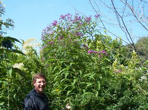 SUN PERENNIALSVernonia altissima (syn. V. gigantea) – This Giant Ironweed has bees, butterflies and customers abuzz when they see it! It grows to a spectacular height of 8’ to 9’ seasonally and very possibly taller with phenomenal dark purple flowering so dense it looks like a flying purple carpet atop those tall stems. This plant is not for the faint of heart! It is the latest blooming Ironweed of which we know – always blooming late season into the fall. It’s wonderful with tall-growing Joe-pye weeds such as Eupatorium fistulosum 'Bartered Bride', large Miscanthus grasses like Miscanthus floridulus (syn. M. giganteus), Buddleia davidii ‘White Profusion’, Helianthus giganteus ‘Sheila’s Sunshine’ and the like. All of these are terrific bee and butterfly plants except for the Giant Ironweed is a clumping perennial and a great wildlife plant. This will likely arrive a large bare root clump, well-wrapped to keep the roots good and moist... have a hole ready to go and we're good.