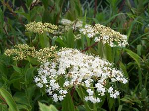 Viburnum. This genus is full of fantastic, multi-season garden worthy shrubs. Garden heroes. Spring flowers, often large and showy, many with heady sweet fragrance are arranged in cymes. Some smell of musk (Viburnum dilatatum) while others produce no fragrance at all. Flowers are followed with berries. If late season and autumn berries are desired then planting two of a species will ensure fruit set; for instance, Viburnum dilatatum 'Erie' and V. dilatatum 'Michael Dodge' will pollinate each other and produce fruit. Viburnum cassinoides is closely allied with V. nudum; but if the flowering times do not overlap then there will be no fruit. However, if you plant V. nudum 'Winterthur' in proximity with V. nudum var. angustifolium, 'Longwood', 'Moonshine' or 'Pink Beauty' berries will abound. Another interesting example is V. lantana which crosses with V. burejaeticum and vice versa. Any V. plicatum f. tomentosum selection such as 'Shasta' or 'Shoshoni' will pollinate with all other V. plicatum f. tomentosum selections like 'Copper Ridges or 'Pink Beauty'. But if you were to plant two 'Shasta' side by side with no other V. plicatum f. tomentosum in near proximity then your effort will be fruitless. As with almost all in the universe of plants there are exceptions. There is one viburnum which appears to be self-fruitful, Viburnum setigerum the Tea Viburnum. Another interesting exception to the rule is Viburnum nudum 'Pink Beauty' which is also self-fruitful - a departure from its siblings. And on the other spectrum are two I can think of off-hand that are barren, Viburnum plicatum 'Roseum' and Viburnum plicatum 'Kern's Pink'. Oftentimes, the dwarf viburnums reamin in a juvenile state and do not produce fruit. All Viburnum of any size that do produce fruit are magnificent in the late season garden. And they feed all manner of birds. Larger, denser shrubs provide cover and nesting opportunities. Nearly all Viburnum have terrific autumn foliage colors, too. Viburnums are members of Caprifoliaceae. All prefer part to full sun and fertile soils. All are cutting grown. Many thanks to Gary Ladman of Classic Viburnums who generously set us straight regarding some of the details we had originally incorrectly lauded... ya can't know everything!