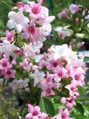 Weigela are easy-natured shrubs with spring funnel-shaped flowers in axillary cymes blossoming on 2nd year wood. Weiglea is happy in average to good draining soils in sun. All W. florida cultivars bloom in middle to late spring. They are useful, forgiving components in mixed plantings with either perennials or other shrubs. They are best planted with companions that offer autumn and winter interest as Weigela is coarse when the foliage drops. Originating in Japan our offerings are of garden origin except for wonderful W. subsessilis which is from China and flowers extra early in the growing season – long before W. florida. All of the following are cutting grown.