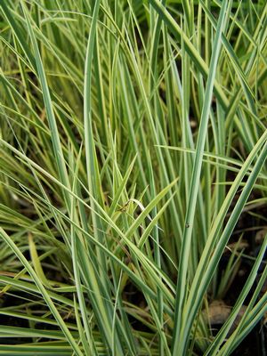 GRASSES & GRASS-LIKE PLANTSAcorus gramineus 'Variegata' - Variegated Sweet Flag displays fans of grassy blades with a showy longitudinal white stripe complementing its dark green other half. Plant it as a marginal, in a container with other smaller growing ornamentals, or as an edging plant in fertile soil its grass-like texture will complement and contrast. Clumping. Established Dwarf Sweet Flag via division.