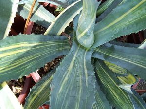 ARID LAND PLANTSAgave americana 'Striata' (ex: Jonathan Lehrer) - This agave has blue-gray succulent leaves with striations of creamy white in each blade. Also a great potted plant in the north. Draining soil with some fertility and added lime in plenty of sun. Keep it drier in winter. For gardeners towards the northern end of its range spring planting is advised. Pot grown offset.
