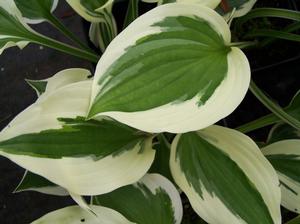 HOSTAHosta 'Minuteman' - Dark green modestly corrugated leaves are brightly contrasted with pure white margins. Good substance. Lavender flowers appear in mid-July on 30 to 35 inch scapes on a plant that tolerates sun better than many other hostas.