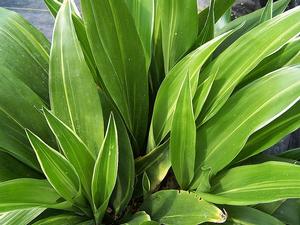 The blade shaped leaves are glossy to semi-glossy on tough stems. Aspidistra is virtually evergreen down south sited outdoors and certainly evergreen as a potted plant in your vestibule up north. The flowers which occur at ground level or just below are akin to wine-maroon sea anemones with the "tentacles" becoming waxy opaque whitish at the tips. Flower color may vary somewhat from this descriptive. And though the flowers are perhaps not a Cast Iron Plant's most ornamental feature, hidden or otherwise they are nevertheless cool, odd curious and even luridly beguiling - one could say their season of flowers, generally during winter, offers a fascinating "Angry Red Planet" dimension... Okay, okay - some of us are easily amused.
