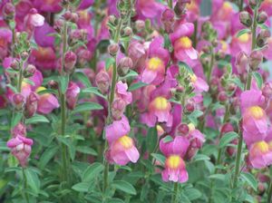 SUN PERENNIALSAntirrhinum hispanicum – This perennial Snapdragon species is in constant bloom from June until frost here in northeastern Connecticut – certainly longer farther south. The innumerable medium pink flowers sport a yellow keel above fuzzy gray-green foliage. Plant it in full blazing sun in very well-drained conditions. Clumping. Cutting grown.