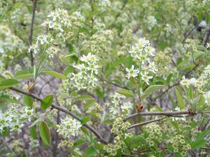 DECIDUOUS SHRUBSAmelanchier stolonifera - Amelanchier stolonifera is not often seen. It is a suckering form of Shadblow or Serviceberry, growing upwards of six feet tall. There are 4 smallish suckering species all native to the east coast including one endangered, A. nantucketensis as discussed in the previous offering. The typical fleecy flowers are pure, clean white almost with a silvery sheen. The flowers give way to glaucous purple-black berries adored by birds. Amerindians gathered them in summer for eating as likely did early settlers. Sample one you and will find them sweet and tasty. The rounded semi-glossy leaves sometimes pick up some red, orange and yellow tones in autumn before dropping but this is not a guarantee, rather it is a bonus. Site in part to full sun planted in fertile, draining and acid soil. The Running Serviceberry is not easy from cuttings so we may only have a handful available in any given season. Cutting grown or by stoloniferous division - either way established in the pot.