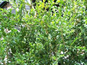 The Boxwoods are a very useful group of broadleaf evergreen shrubs having, depending upon ultimate size, many landscape applications. They prefer fertile soils on the acid side of the Ph spectrum. Boxwoods tend to be shallow-rooted and benefit from organic mulches. Most can be grown in full sun conditions but are happier in part shade. The smaller growing Korean Boxwoods, Buxus microphylla, seem to hold their foliage color better in part winter shade. The English Boxwoods, B. sempervirens, are the larger growing members of the clan and benefit from wind protection especially in winter. All of the following offerings are cutting grown. (Spring Only)