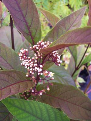 DECIDUOUS SHRUBSCallicarpa kwangtungensis – This is a most extraordinary Chinese Beautyberry laden with oceans of autumn amethyst-purple berries; indeed, the shrub in autumn is a mounded cloud of purple. Its leaves emerge with a dusky purple flush; the veins and stems artfully retain the dark purple color as the leaves turn green to mossy olive-green. The tissue of some leaves mix the olive with purple tones for a bronze-purple blend. The leaves are larger than those of the better known C. dichotoma and exceptionally beautiful all through the growing season. Imagine this placed with miniature golden conifers and “WOW” is achieved! The flame-shaped blades often pick up extraordinary autumn purple and pink tones in beautiful contrast to those leaves that retain green to greenish yellow color. Typical late summer axillary pink-lavender flowers are very showy against the foil of olive and purple leaves. These give way to the treasure that this shrub is in the fall garden usually in conjunction with the fall foliage show – just sumptuous. Undeservedly rare, Russell Stafford and I stumbled upon this amazing shrub at the Arnold Arboretum where it was a solid mass of purple in November. Certainly a doer in zone 6, it is probably a cut back shrub in the northern end of the range; this will not be an issue as it flowers and fruits on new wood. Unless sited in a really protected microclimate Callicarpa kwangtungensis appears to fruit too late to be a berry treasure in USDA zone 5 where it can get smacked by a hard frost but then again the flowers are beautiful against foliage that is extraordinary in color – though craving the opulent fruit display we're happy to grow it for the foliage attributes. Spring planting advised in northern reaches. Cutting grown.