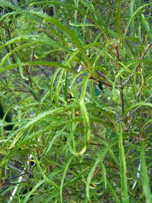 DECIDUOUS SHRUBSRhamnus frangula 'Asplenifolia' - A very narrow-leaved form with irregular margins of Glossy Buckthorn whose foliage turns a respectable yellow in autumn before the leaves drop. Relatively narrow in youth this upright shrub will expand its diameter in time but always grow taller than wide. The light gray-brown wood sports a plethora of lighter colored lenticels and because of this character the bark is cherry-like and attractive in the winter landscape. This is a tough, easy shrub when sited in full to half sun planted in average to even poor soils that drain well. An established plant is greatly drought tolerant. There are few fruits occurring on this form. In some years no berries form. It has never set seed here in its many years of its garden habitation - this form in our humble estimation is not an invasive threat. Cutting grown.