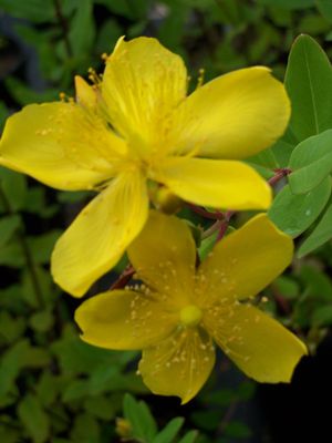 DECIDUOUS SHRUBSHypericum patulum ‘Hidcote’ – This wonder shrubby St. Johnswort sports showy 2” golden-yellow flowers with a beautiful plush set of stamens in summer at the tips of new wood. The almost diamond-shaped leaves with rounded corners are simple, opposite, medium glaucous green above and whitish below. Most autumns the foliage turns yellow but as I describe it this year on October 28, 2009, the leaves are aglow in a beautiful light bright orange with some deeper highlights – very nice! We cut ours down to the ground annually and depending upon spring to early summer moisture it will grow between 2.5’ to 4’ tall. This is an easy, tough and handsome shrub in well-drained soil and sun – virtually evergreen in climates warmer than our own. ‘Hidcote’ is still underused and we can’t understand why? For gardeners towards the northern end of its range spring planting is advised. Established potted St John's Wort, cutting grown.