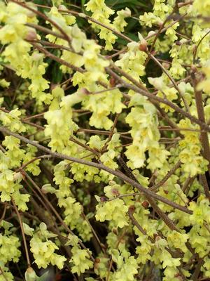 DECIDUOUS SHRUBSCorylopsis pauciflora - Buttercup Winterhazel produces masses of small, pendulous, fragrant primrose yellow flowers in early spring. It's lovely as are all the Winter Hazels when the daffodil days arrive. Site in fertile soil in a semi-shaded to dapple position sheltered from winds if at all possible. Spring planting is advised in the north. Established potted shrub, cutting grown.