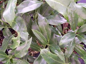 Aucuba japonica var. borealis – This is the hardiest of all among the growing list of Japanese Aucuba cultivars. It’s a beauty with a display of rich, glossy dark green foliage on a mounding and compact plant. Leaves are smaller and narrower than many of the available selections. It survived the hard USDA zone 5b winter of 2009 planted in a sheltered spot along the north foundation of our home. We had abundant snowfall but very many cold days and nights with at least 3 nights bottoming-out in the lower minus teens. When the snow melted it looked perfect. Only after the seemingly endless rains that followed well into July that very odd year did several branches blacken presumably from too wet conditions. But in the following December at the time of this writing the remainder of the shrub is unscathed and looks beautiful. Under cover of snow in the hard winter of 2011 also with several nights down to minus 10F and lower it emerged from the melting snow with out a single damaged blade, as fresh and green as it had looked the previous autumn. One important point: this particular variety appears to especially abhor too much water. Too constantly wet conditions are an anathema to its well being. We have yet to attempt it in the more open shade garden. Aucuba japonica var. borealis is a female form. This amazing cold hardy form may grow larger farther south... but why would southern gardeners want this form with so many spectacular cultivars available to you? Northern gardeners really should consider attempting this broadleaf evergreen.