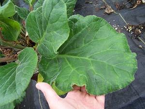 SHADE PERENNIALSBergenia ciliata 'Wilton' (aka 'Dixter Form') – A stunning, bold perennial. The Hairy Bergenia... the name almost makes one feel itchy - but keep reading (!!)... will produce barely pink flowers which darken with age unless petioles are whacked by a spring frost. The attractive florets cluster atop thick stalks just as the foliage begins to emerge. This is where it gets really good: leaves emerge, expand and can grow to the size of a dinner plate, 12 inches diameter. Huge, bold and semi-glossy dark green leaves provide extraordinary textural contrast to finer and more delicate garden companions. At the end of the growing season leaves often pick up a beautiful red infusion just in time for the gardens' autumn festivities. Even more alluring is the fact that the leaves can remain semi-evergreen at the warmer end of the growing range. The well-behaved Bergenia is clumping. Fertile, friable soil in part sun – probably best in afternoon shade although dappled would suit 'Wilton' as well. Should be seen with greater frequency in American gardens. C'mon, people! Do the anti-provincial thing! Big pots worth every penny. Established pot grown division.