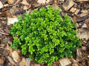 BROADLEAF EVERGREEN SHRUBSBuxus microphylla var. japonica ‘Morris Midget’ – This is a beautiful evergreen boxwood densely cloaked in green mouse-ear shaped leaves about .33” long and wide barely notched at the apex of the central vein. ‘Morris Midget’ would be nicely used as a repeated foreground foundation plant before and between larger border shrubs, an excellent knot garden candidate, rock garden, miniature railroad garden, a companion to dwarf conifers and an edging plant. It takes well to clipping as do all boxwoods. Protect in the north from winter winds. Also, we have found the beautiful foliage remains greener and more attractive in some winter shade. Fertile draining soil on the neutral to acid side of the Ph spectrum in part sun, afternoon shade. 'Morris Midget' may grow 12 inches high by 18 inches wide in 10 years. Organic mulches are very beneficial. Cutting grown.