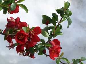 DECIDUOUS SHRUBSChaenomeles japonica ‘Kuro’ – 'Kuro' is a deep dark red-flowering quince. The only one of which I know that is equally rich and dark, and perhaps darker is listed below, ‘Kurokoji’; it is definitely deeper, darker and richer than 'Texas Scarlet'. 'Kuro' is wider than tall with the glowering jewels of flowers studded among its branches. Both ‘Kuro’ and ‘Kurokoji’ form green fruits maturing to a soft yellow that can be used to make jelly. This plant is also listed as C. speciosa ‘Kuro’ by some accounts. There is some confusion to be sorted through before the final taxonomical designation of members of the quince clan can be finally determined. Site ‘Kuro’ in full to nearly full sun planted in fertile draining soil. Once established it will demonstrate drought tolerance. Cutting grown.