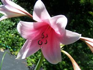 BULBSCrinum x 'Summer Glow' – Lovely pale pink-white trumpets emerge with a somewhat darker stripe at the center of each petal. As the flowers mature the pink darkens to a juicy pink-purple while the blush margins grow more noticeably pink. This remarkable Crinum Lily blooms successively on fleshy stalks right through the summer. Developed in the 1950s by Grace Hinshaw 'Summer Glow' is a virtual heirloom as worthy now as when it first appeared. Parentage is C. 'Cecil Houdyshel' x C. 'Ellen Bosanquet'. Full sun in fertile, draining soil. Keep it drier in winter especially in pot culture. For gardeners towards the northern end of its range spring planting is strongly advised. Pot grown bulb.