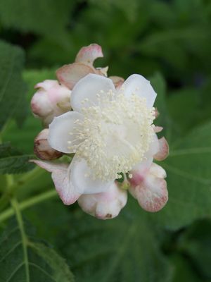 SHADE PERENNIALSDeinanthe bifida ‘Pink Kii’ (ex: Hinkley) – 'Pink Kii' is an herbaceous hydrangea relative with clustered waxy flowers composed of rounded light pink sepals surrounding the white center from pink buds in early summer. This lovely perennial comes from the Kii Peninsula, Japan. Plant ‘Pink Kii’ in moist, fertile soil in sited in dappled to open shade. Though this is a D. bifida, our plants mostly display leaves culminating in a point, broadly obovate. But the bifid characteristic does display now and again. This clumping perennial becomes more and more beautiful through the years without having to divide it. Cutting grown.