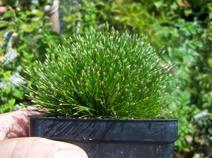 POND & WETLAND PLANTSEleocharis radicans – How's this for a fun common name: Radical Fiber Optic Spikerush?! Sounds like a left-wing super hero to us... Anywho, this curious perennial, in fact a miniature rush, will make an interesting ground cover somewhat resembling weird undersea algal growth. And, in fact, it's very much at home in wet soils. This want for water suggests applications ranging from pond marginal to bog hummock with Pitcher Plants. Eleocharis radicans could make an interesting potted windowsill plant or even an unusual, surprising palette cleanser set between bonsai specimens. It will live in other than mucky soils though; those that retain constant moisture but are not perpetually wet may actually restrain its tendency to spread as quickly as it can in the juicy conditions it prefers. Full to part sun. Pot grown division.