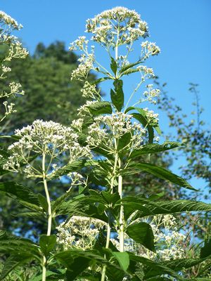 SUN PERENNIALSEupatorium fistulosum 'Bartered Bride' (alt. Eutrochium fistulosum 'Bartered Bride') – A very tall white blooming Joe-pye Weed with mounded mops of fleecy white flowers. Good as a background plant in the perennial garden, a wild garden or a prairie-like setting. It looks especially fine with late flowering ironweeds and perennial sunflowers as well as tall, late Rudbeckia and grasses; also beautiful planted with Butterfly Bushes. Speaking of which: 'Bartered Bride' is a very good bee and butterfly plant. Site in full to mostly full sun planted in fertile moisture-retaining soil. Incidentally, many are listing this as E. maculatum. We believe that this moniker is incorrect. This is a clumper with moderate increase. Division.