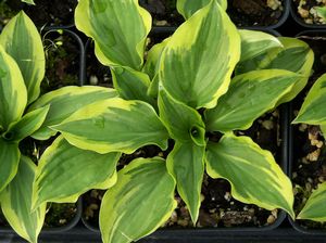 Hosta. Hosta is a staple for shade gardeners. Hostas prefer open to dappled shade conditions. Early morning or late day sun is generally acceptable. The exception to the rule (and it seems in the plant world there is always at least one exception to the rule!) is Hosta plantaginea which requires more sun for flowering to occur. Hostas can fill a midsummer’s day dream with spikes of lavender, purple and white blossoms, some fragrant. There are growers and collectors who dislike hosta flowers though I find this a curious affectation; I am personally grateful for perennials of easy disposition that so readily bloom, carefree, adorning and lighting the woodland garden during a period that might otherwise be a flowerless void. Flower your garden! Dig in. Have fun. Hostas prefer fertile draining soil with many demonstrating moderate drought tolerance once established. Many of the following are offered as pot-grown divisions of our stock plants. Others are from tissue culture. For Hosta there are several different size charts available that can be found on line with some digging. Of course, some plants straddle these arbitrary determinations. We are using the following classification...