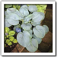 HOSTAHosta 'Powder Blue' – This hosta is, indeed, bright powder blue. Growing 26 inches tall by 60 inches wide 'Powder Blue' is comprised of heavily corrugated of thick substance making them slug-resistant leaves. Each leaf 14 inches long by 11 inches wide. Lavender flowers frill the 30 to 36-inch scapes beginning their reign in late June to mid-July.