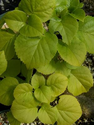 Hydrangea anomola ssp. petiolaris 'Sutter's Mill' - Soft, mellow yellow leaves are this selection's distinguishing feature of this unusual form of Climbing Hydrangea. 'Sutter's Mill' would be just beautiful climbing a brick wall or set upon a beach-blue home or one with silvery gray shingles. Oh, heck - what about splaying along the side of a dark red barn or spilling across a granite wall? Typical, large and showy white flowers occur late spring to early summer just skirting atop the leaves. The woody skeletons of the flowers hold through the winter among sinuous, branching dark brown exfoliating wood that displays a putty interior. All in all, Hydrangea anomola ssp. petiolaris 'Sutter's Mill' is a very worthy deciduous four-season vine. Site in morning sun and afternoon open to dappled shade planted in fertile, moisture-retentive but draining soils. Layered and pot-grown.