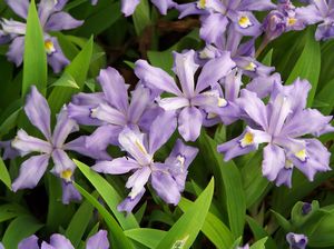 SHADE PERENNIALSIris cristata 'Eco Blue Bird' – This selection of Crested Iris was made by Don Jacobs of Eco Gardens made. Compact and vigorous 'Eco Blue Bird' flowers in spring sporting lovely blue iris flowers complete with gold fringe. Small enough for the shaded to part sun rock garden or even a trough this little beauty holds its handsome fans of blades for the remainder of the growing season. As with many Iris the rhizomes should be planted at ground level or slightly higher than the surrounding terrain.'Eco Blue Bird' is a clumping perennial with moderate increase. For gardeners towards the northern end of its range spring planting is advised. If planted deep they will likely languish and rot. Division.