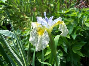 GRASSES & GRASS-LIKE PLANTSIris x pseudata 'Ally Oops' (ex: Jonthan Lehrer) – With light blue standards and falls, darker blue veining and bright yellow signals this is a lovely addition to the world of Iris. However, this is a changeable flower; some years flowers are apparently larger, some years the falls fade with more white in them still supporting bluer standards. In yet another year at Borglum's Iris Gardens the flower had more yellow in it. The flowering stalks mimic Iris sibirica types in some years and then can inexplicably form 2-way branching with extra buds. It almost seems that you can have several different irises for the price of one! It is certainly a chameleon of the iris world. The one constant... well, maybe two is that it is beautiful and its bloom period in the season of iris flowering is early-middle. Though this came to us from my good friend, Jonathan Lehrer, listed as an I. x pseudata Dana Borglum believes it may be a sterile sibirica and pseudacorus cross. The foliage certainly looks to be that of I. pseudacorus. But Mr. Borglum doesn't know with any certainty the parentage of 'Ally Oops'. It is named for the Borglums' youngest granddaughter, Ally, who at that time “was in a clumsy stage of her life.” Full to mostly sunny siting planted in fertile soil. Clumping. Moderate increase. Established potted Iris by division.