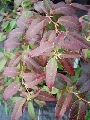 BROADLEAF EVERGREEN SHRUBSLeucothoe x 'Scarletta' - Nice, compact low-growing broadleaf evergreen shrub with arching, fountaining stems covered with 5-inch lustrous blades ending in a point. Foliage emerges bright red and matures glossed deep green. The leaves turn red-purple to bronze purple as the weather cools towards the shorter days of the year. Attractive axillary spikes flowers hold numerous waxy white urn-shaped flowers which erupt in May. Cool, acid draining loam. Sandy fertile loam is fine. 'Scarletta' will tolerate some clay. Site in part to open shaded exposure. Does not like wind. Potted shrub from cutting. 'Scarletta' is the result of a breeding program between Leucothoe axillaris and L. fontanesiana which took place in the late 1970's in Ohio. Common name is Dog Hobble... REALLY??? It's an insult to fine canines AND certain members of the Ericaceae. Who comes up with this crap and worse: why does it stick? Geez. Breath. Okay - I'm over the tanty. Potted shrub from cutting.
