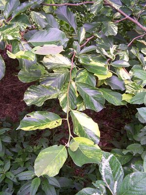 TREESMagnolia denudata ‘Fran Smith’ – 'Fran Smith' is a variegated leaf selection of the Yulan Magnolia with the dark green leaves splashed and streaked in creamy yellow, 6” long by about 3.5” wide. It’s very nice! Flowers are typical vases but with a bare flare of red-purple at the base of tepals. We are selecting only the most variegated stems. Culture is the same as most magnolias - fertile, organic deep loam and moisture retention; this is not a drought happy woody. If reversions sprout they should be pruned out. We have also seen 'Fran Smith' offered as a hybrid. It may be... and its recalcitrance from cuttings certainly indicates a heavy dose of M. denudata parentage! Plant in fertile, moisture retaining soil and site in part to full sun. Spring planting is strongly urged in the north.