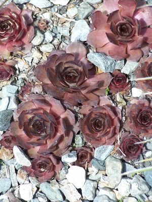 ARID LAND PLANTSSempervivum 'Grammens' – is a large-growing beauty. In winter this Hens and Chicks picks up a rich dusky purple shade. During the growing season it is a complex lilac, golden-brown (especially noticeable in wet, cloudy weather) with a concentration of deep red-purple at the tips plus a mix of gray, green and green-blue in varying lights and at different times of the growing season. It is a most beautiful and richly colored member of the Crassulaceae. Site 'Grammens' in a garden spot in which it may be viewed and appreciated in all seasons. Plant in well draining soil mixed with grit for sharper drainage. 'Grammens' is a moderate increaser with a clumping habit. Full sun. Grown from offsets, “chicks”.