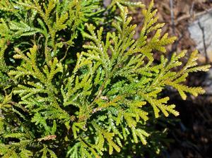 CONIFERSThujopsis dolobrata 'Aurea' (syn. 'Aurescens') – This is a much less common form Japanese Elkhorn Cedar with all outer foliage displaying an antique gold cast over a dark lime rind green interior. Thujopsis dolobrata is another fascinating monotypic genus in the vast world of conifers. Foliage upon close inspection is flattened sprays of scaled segments that loosely resemble the shapes of some corals – the aggregate like a stampede of elk horns. Large, mounding and broad spreading 'Aurea' is useful as a screen or part of a mixed hedgerow, as a backdrop to deciduous shrubs and / or perennials. Fertile, organic soil that holds onto moisture between rainstorms in full sun to three quarters shade. Best foliage color will be achieved in more sun. In the north site where this marvelous conifer has some winter protection from harsh winter winds. Cutting grown. For northern gardeners these are best planted during the spring window and not in autumn... for southern gardeners there are greater possibilities but know your zone and what is genuinely feasible. Please read the Genus Overview below.