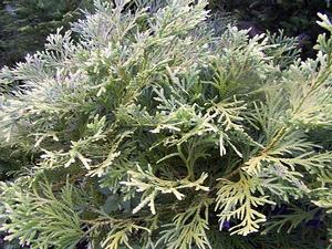 Conifers. This exceptionally diverse group includes mostly evergreens exhibiting all manner of size, color and shape cloaked in scale-like foliage as in Arbor vitae (Thuja) and Elkhorn Cypress (Thujopsis) and Junipers (Juniperus) generally to the needled species like Pine (Pinus) and Spruce (Picea). Some notable deciduous members include Larches (Larix), Bald Cypress (Taxodium), Dawn Redwood (Metasequoia) and Golden Larch (Pseudolarix). There is much vexing confusion for customers surrounding eventual sizes of these remarkably diverse cone-bearing plants which range from shrubby mat-forming members to majestic, gigantic trees with a roster of shapes and forms between.